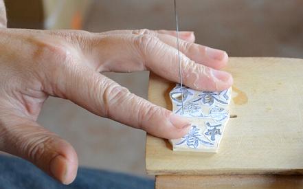 作為鑲嵌用的字,是由工匠用手工一個(gè)個(gè)用工具鋸出來的